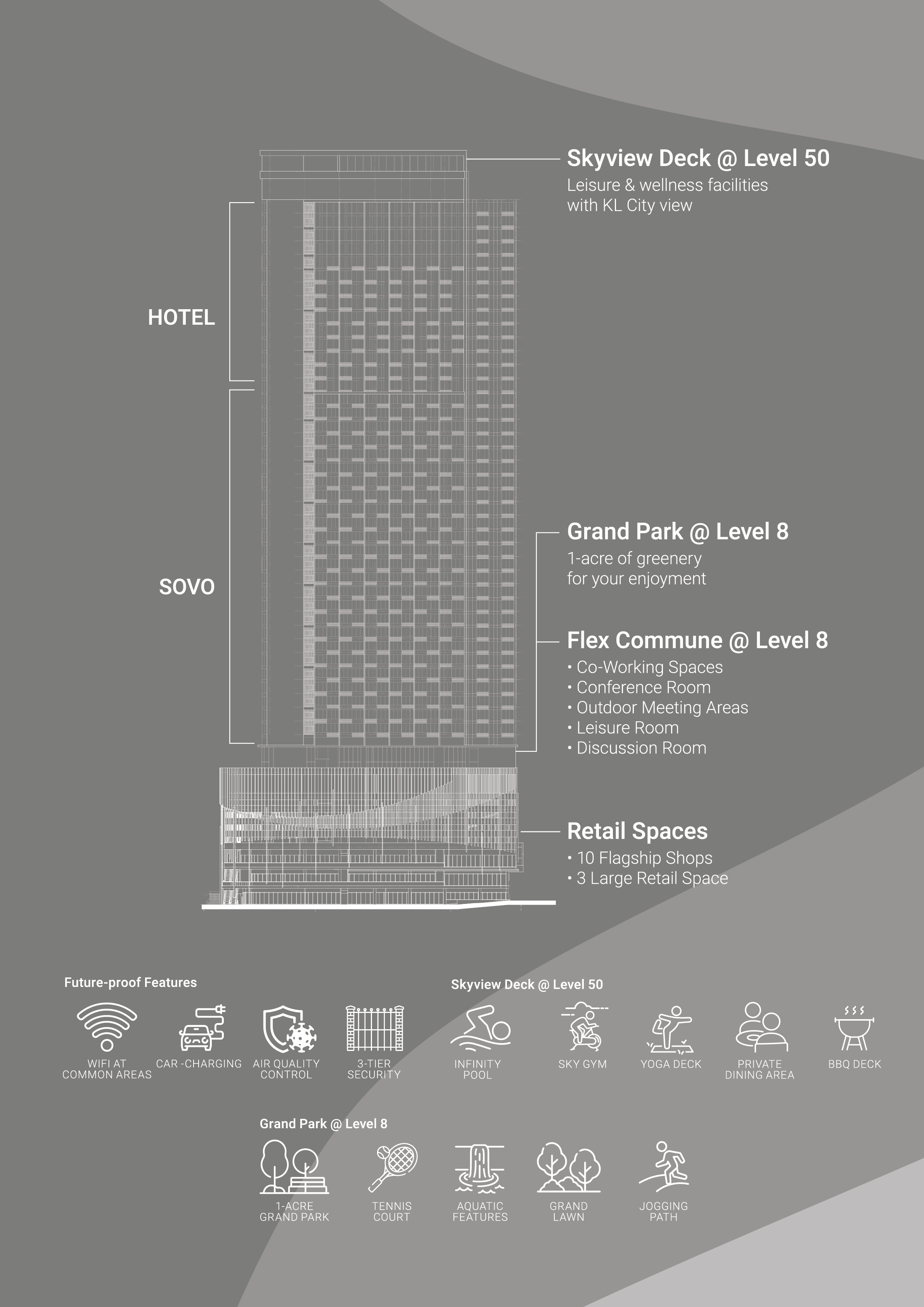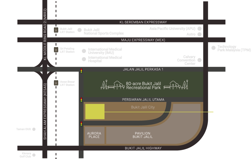 Feast your eyes on the scenic sights of Bukit Jalil city and curated biophilic design concepts while indulging in 1-acre greenery facilities.
